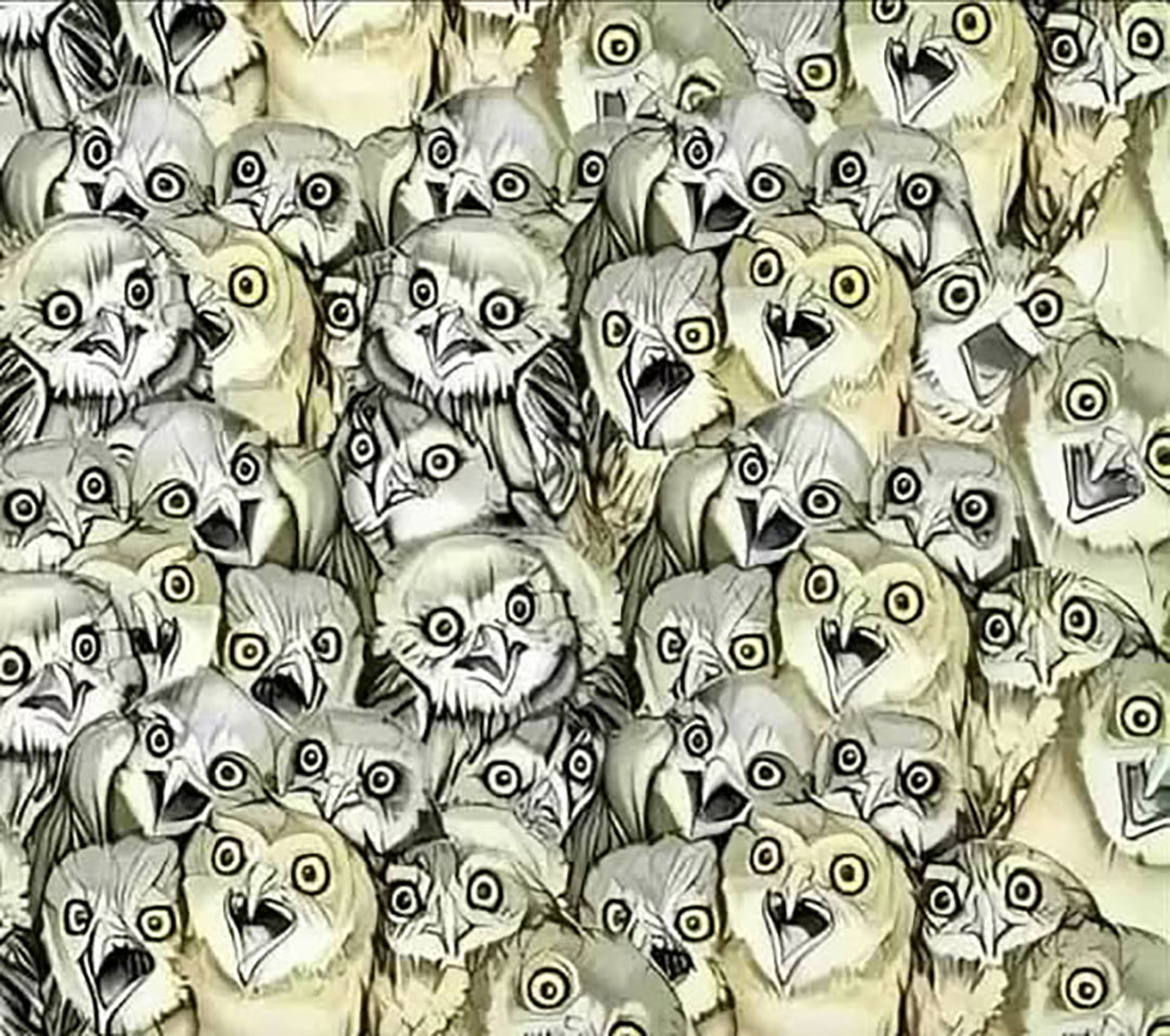 Prêt(e) pour un petit défi visuel qui mettra vos sens à l’épreuve ? Sur cette image, apparemment remplie de chouettes, se cache un intrus malicieux : un chat malin qui a su se fondre dans la volée. À vous de jouer : où s’est-il caché ?