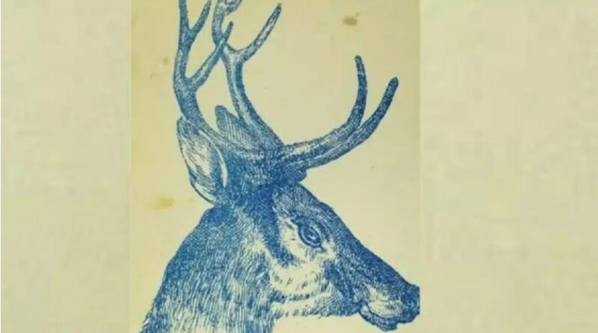 Au premier coup d’œil, cette illustration semble montrer un cerf imposant avec ses bois majestueux, sans particularité notable. Pourtant, un lapin s’y cache avec ingéniosité, parfaitement intégré aux lignes de l’animal principal.