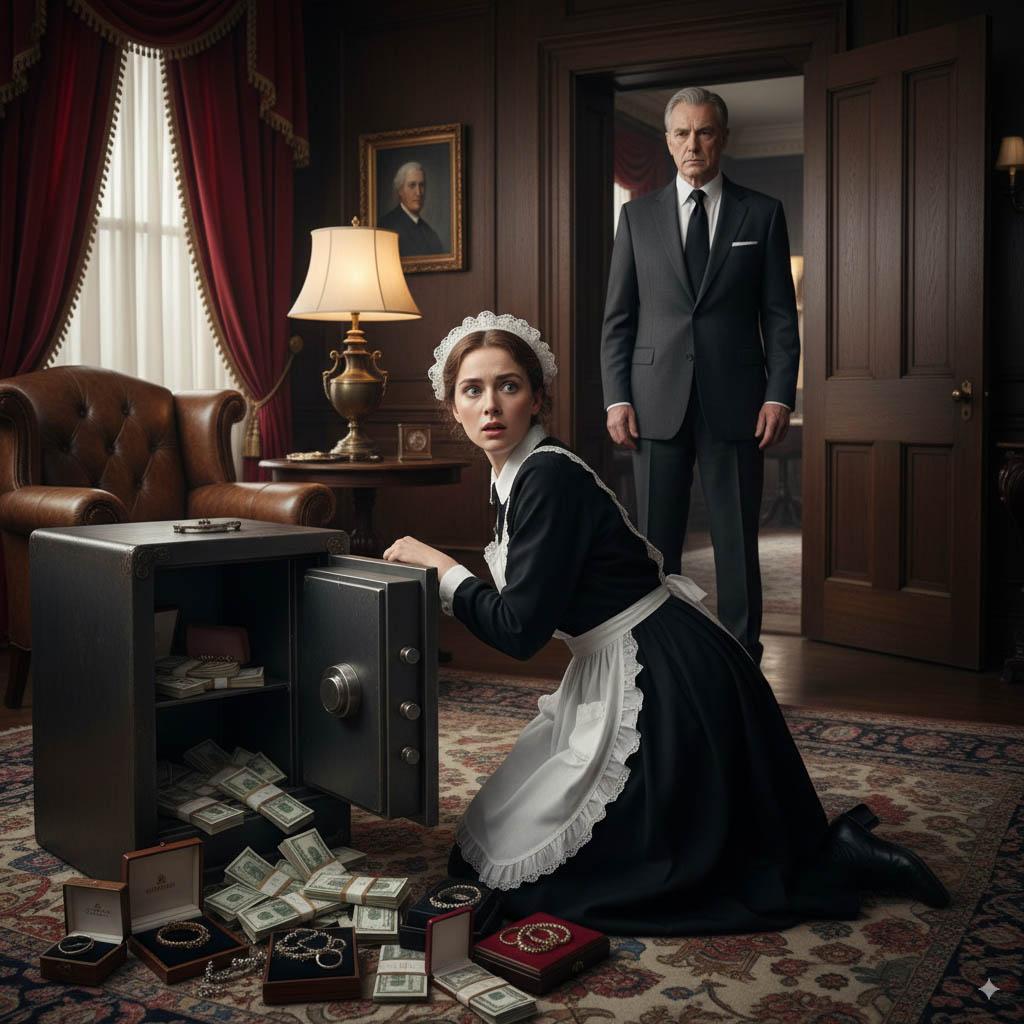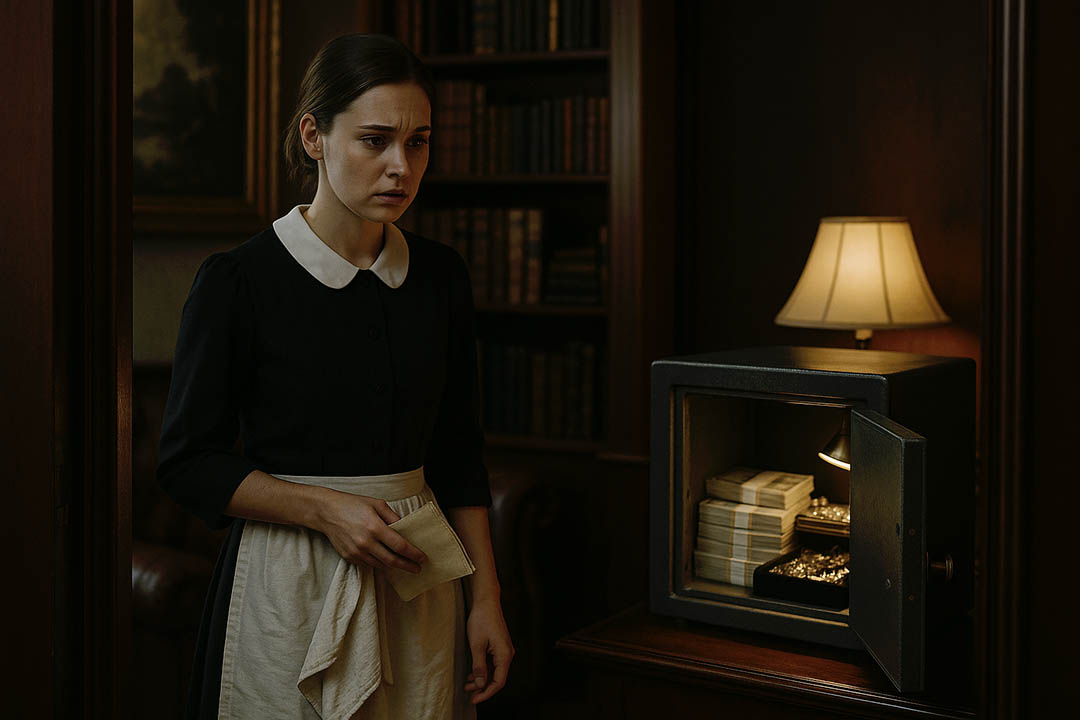 Par une journée particulièrement pluvieuse, l’homme d’affaires décida de mettre ses doutes à l’épreuve. Dans son bureau, il laissa intentionnellement son coffre-fort béant, exhibant clairement des bijoux de valeur et d’importantes sommes d’argent. Il se dissimula ensuite, attendant avec une certaine appréhension l’arrivée de sa femme de ménage.