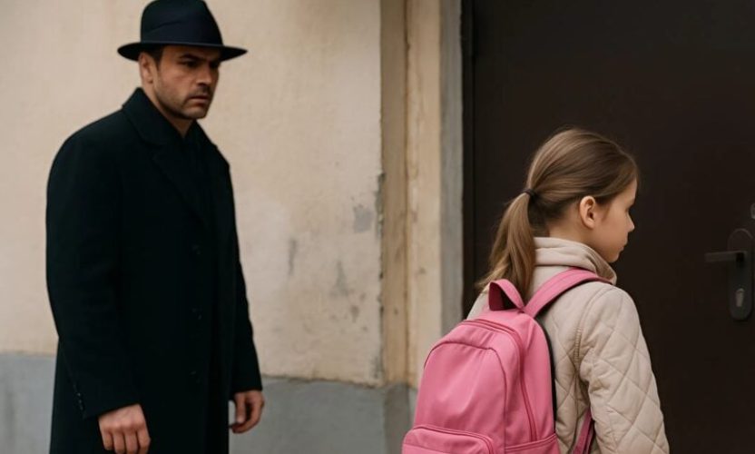 Ce jour semblait commencer comme tant d’autres. La jeune écolière cheminait tranquillement, son sac d’école bien ajusté sur ses épaules, lorsqu’une forme sombre capta son regard. Près de l’entrée de sa résidence, un individu de haute stature, enveloppé dans un manteau sombre, se tenait parfaitement immobile. Seuls ses yeux, partiellement dissimulés par une écharpe, semblaient observer attentivement chacun de ses mouvements.