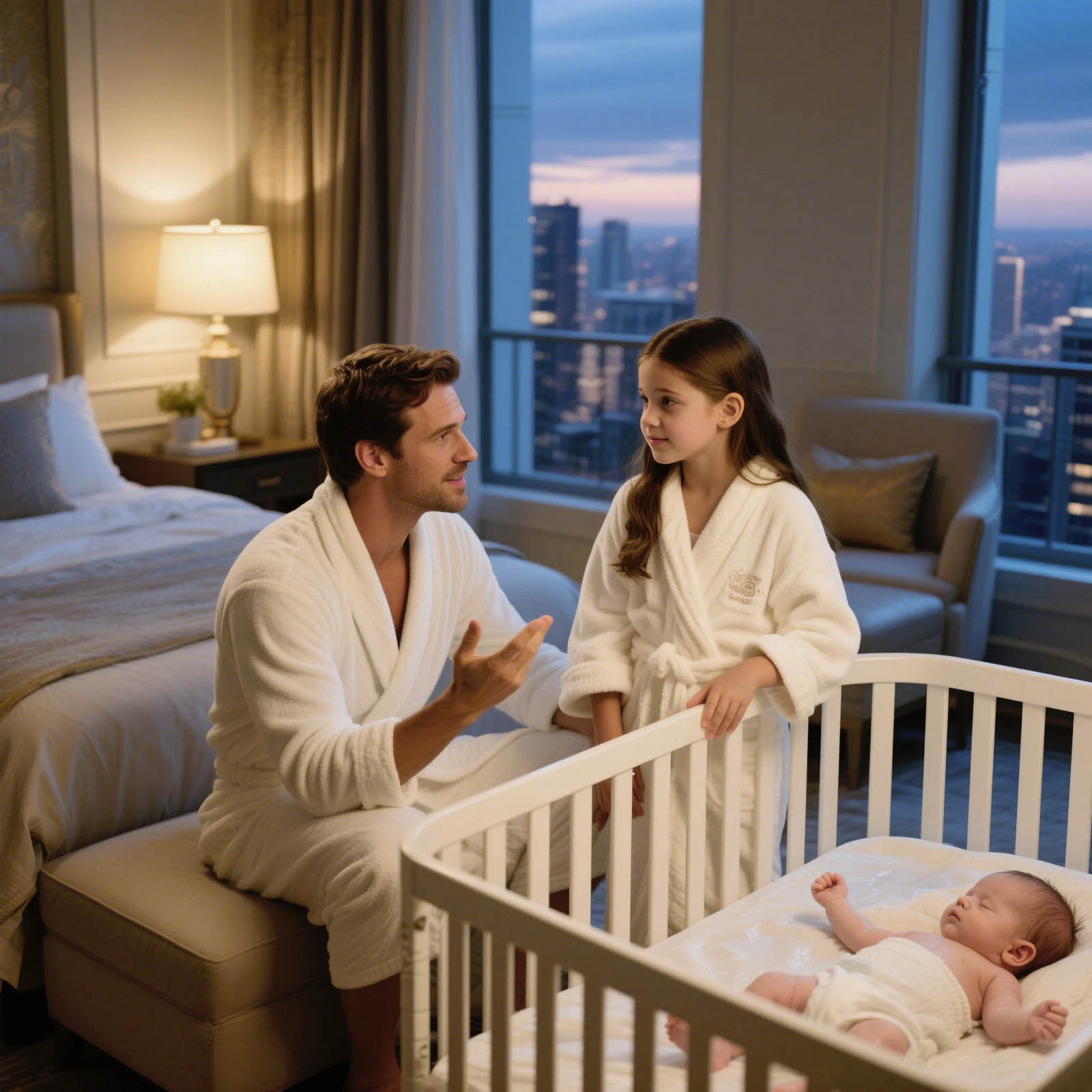 Cette même soirée, après un bain réconfortant et un repas chaud, Marc pénétra dans la chambre où Camille, enveloppée dans un peignoir douillet, surveillait le sommeil de Léo.