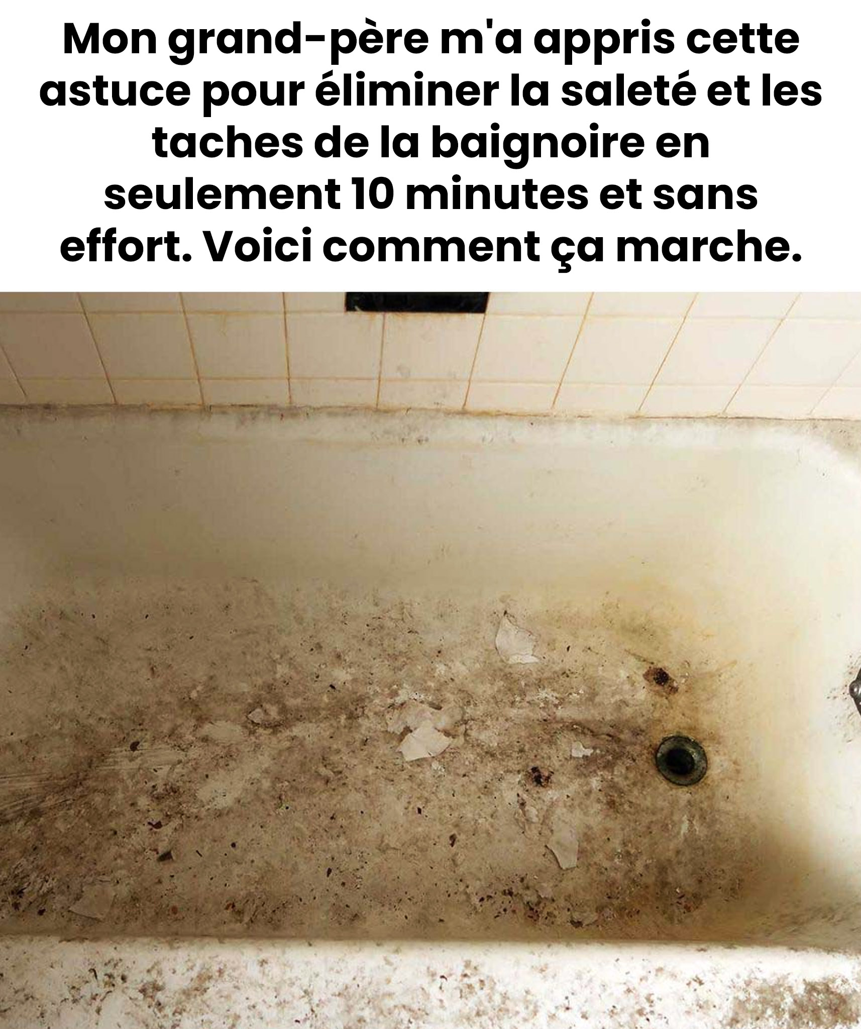 Dites adieu aux produits chimiques coûteux et aux efforts interminables. Cette méthode ancestrale démontre qu’avec peu de moyens, on obtient un résultat spectaculaire. Votre baignoire rayonnera de propreté, et vous pourrez en profiter en toute sérénité.
