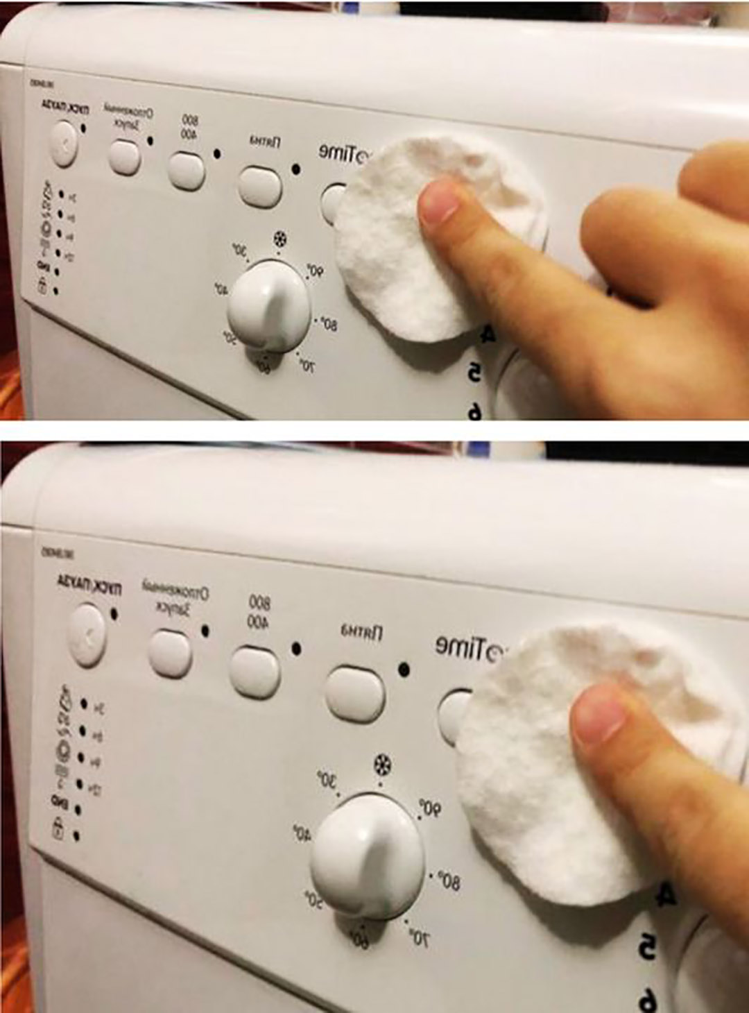 - Pour un entretien courant : passez une lingette imbibée dans le tambour pour dissoudre les résidus de lessive et neutraliser les odeurs.